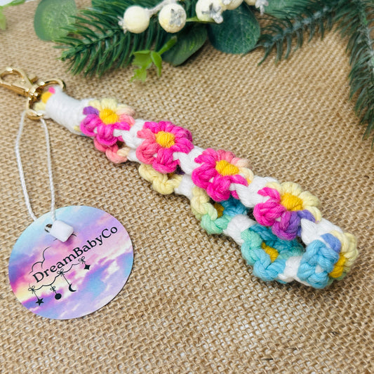 Rainbow Macrame Floral Wristlet